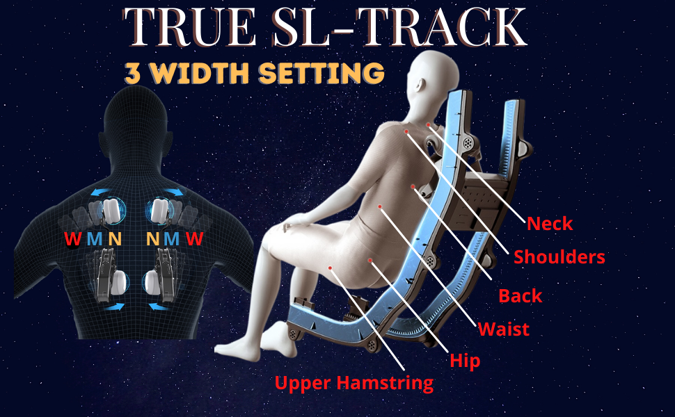 • Humanized Quad Rollers detect the users height, you can adjust the width, you can massage from Neck to full back to buttocks to upper hamstrings.